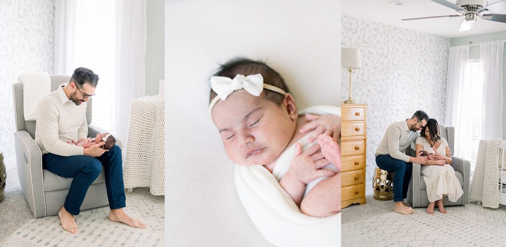 For me to be able to photograph your baby in your home we need 2 things. First, we need an area near a window, in a room with neutral walls (to photograph baby). The family photos with baby are generally done in the master bedroom or nursery if you have one. We could also do the living room area. You do not need to have your home super clean or decorated a certain way, you have a newborn baby so I totally understand you! We just need 2 spots for photos. 1 near a window for baby and 1 for family photos, very simple!