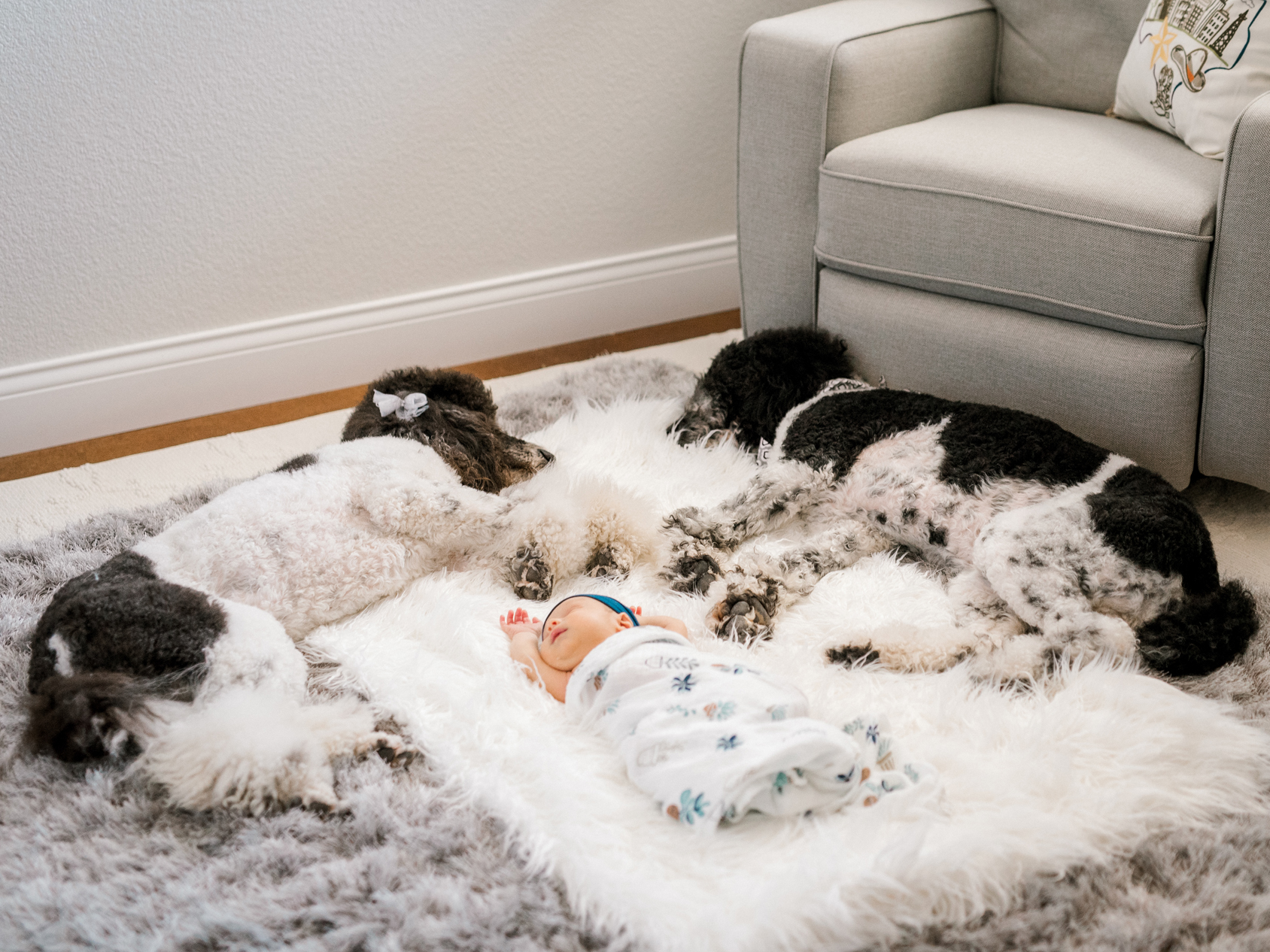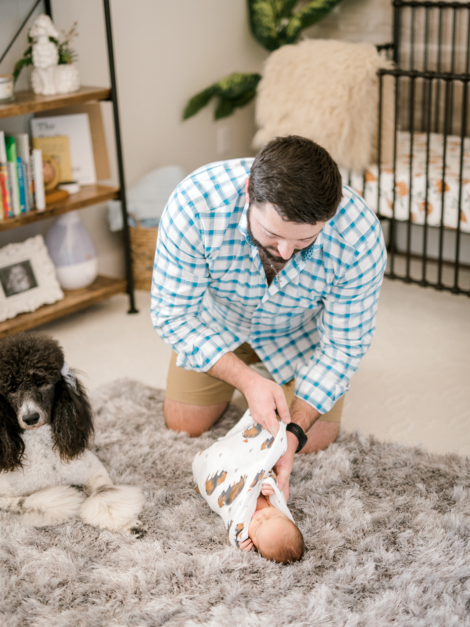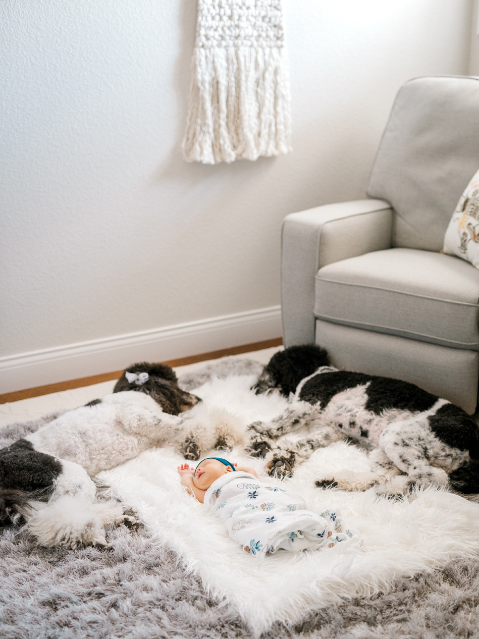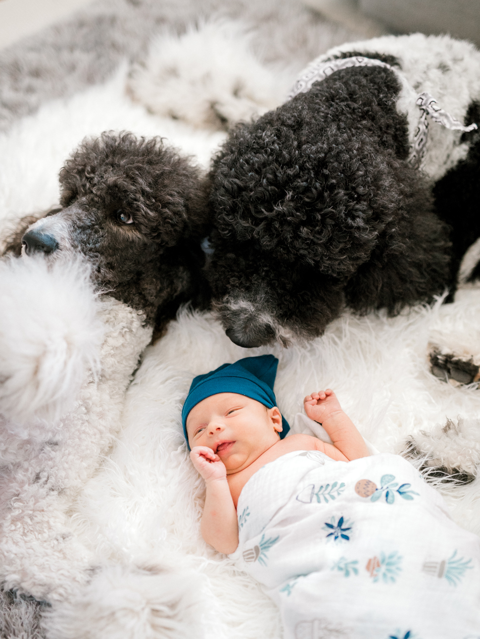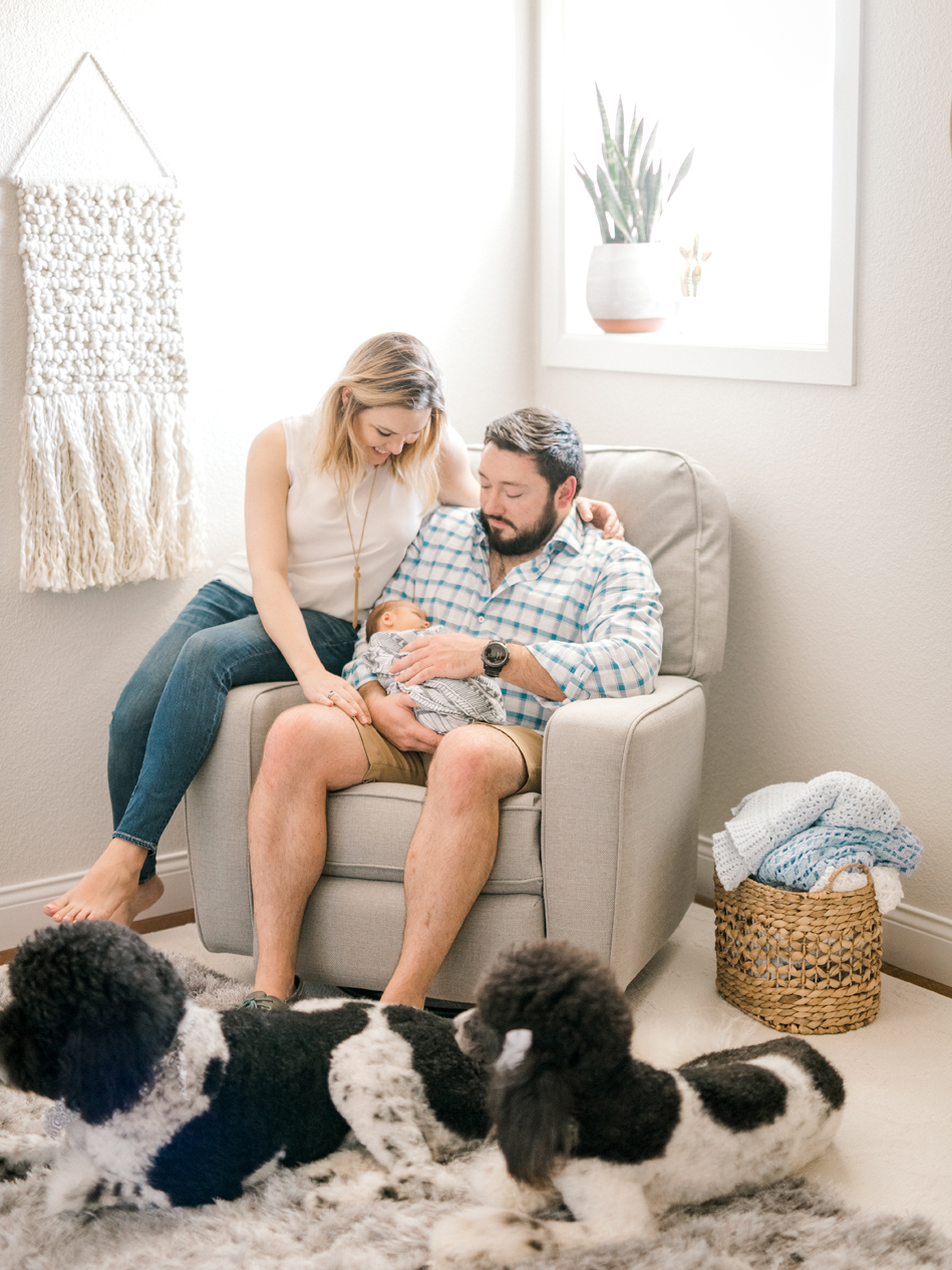 The Crumrine family welcomed me into their home to photograph their newborn baby boy Briggs (love the name!). The nursery was very detailed and oh so adorable. They included their Poodles in some the photos and I absolutely fell in love with them!