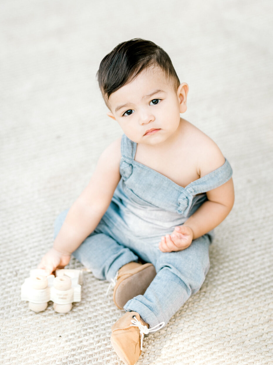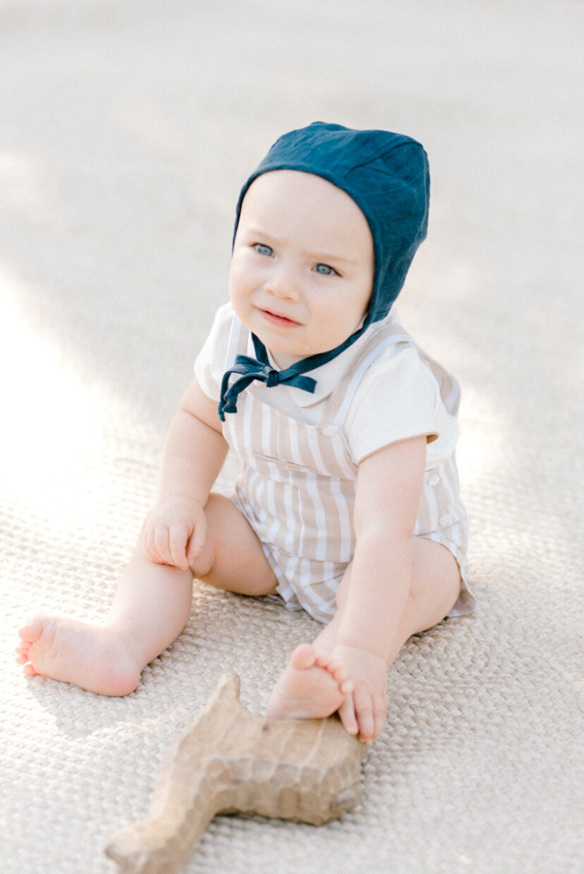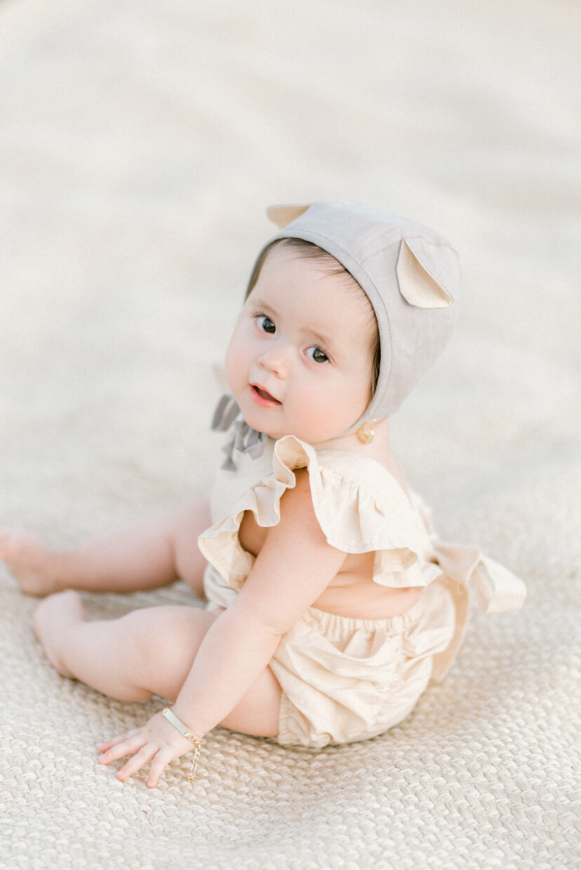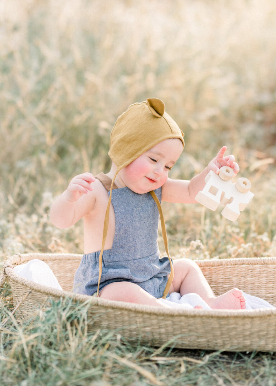 I created Bebé sessions for babies and toddlers sitting age and up. I photograph the babies in minimal backgrounds, using nostalgic and neutral props